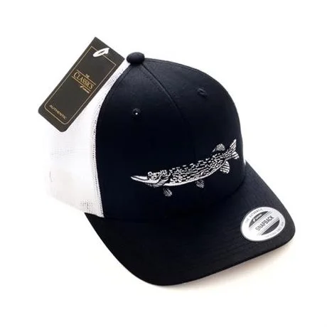 Classic 2-tone trucker snapback in Black/White with embroidered Pike Logo.